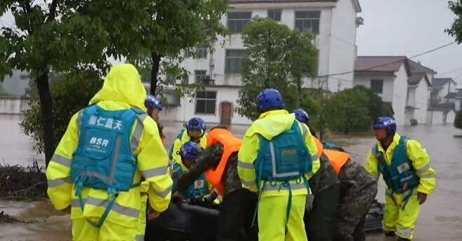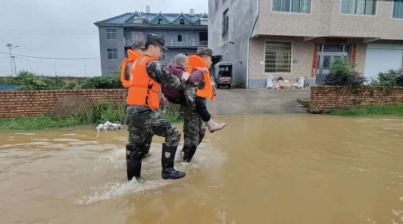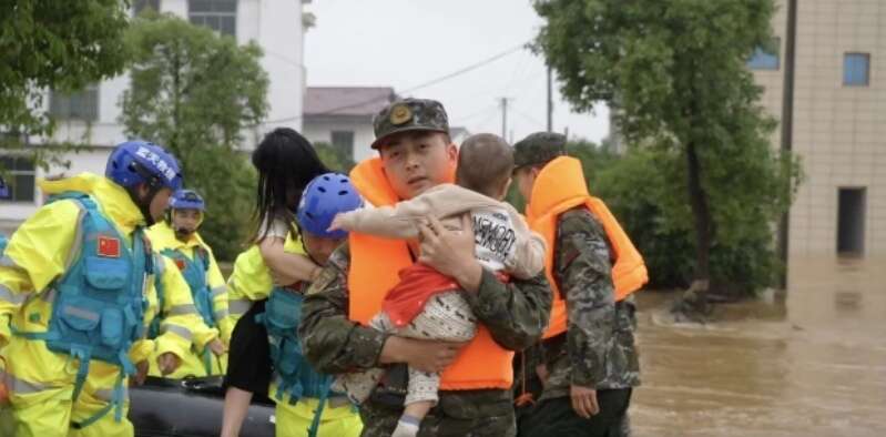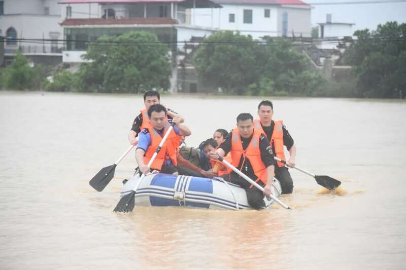 5月5日至6日,江西抚州多个乡镇遭遇特大暴雨。强降雨导致河水猛涨、农田被淹,出现了大规模城镇内涝。武警江西总队抚州支队官兵迅速集结,携带救援装备赶往抚州市宜黄县梨溪镇、崇仁县六家桥乡等地展开救援。