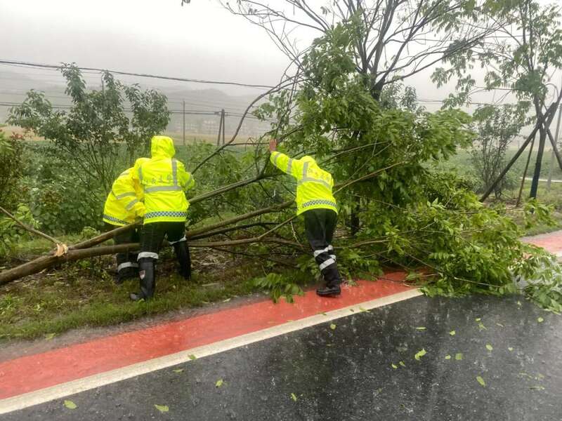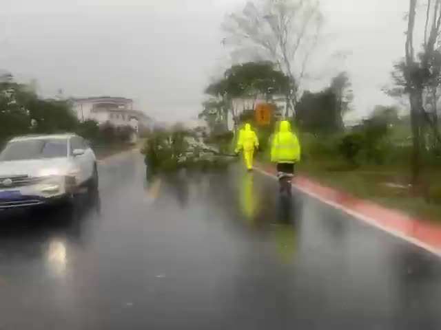 5月5日下午,新余市分宜县突降暴雨,给群众出行带来不便。当地交警部门组织警力顶风冒雨加强重点路段巡逻管控,隐患排查,全力保障群众生命财产安全。分宜交警双林中队民辅警路面巡逻时发现辖区双林集贤至宋家路段多处道路树木被大风吹倒,占据部分行车道,对过往车辆正常行驶带来影响。民警立即打开警车双闪灯提醒驾驶员减速慢行,拼尽全力将树木挪移到路旁安全处,在最短时间恢复道路畅通。