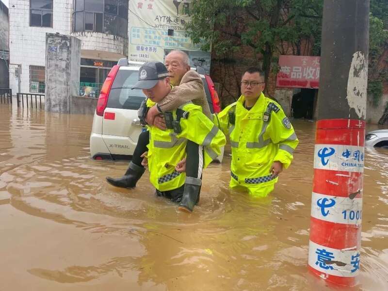 极端天气造成崇仁县县城区主干道出现多处内涝,个别路段积水较深,给车辆和行人带来诸多不便。崇仁县公安局立即启动极端恶劣天气应急预案,闻“汛”而动,疏导交通、救助群众,确保道路安全、有序、畅通,守护群众平安,在暴雨中彰显为民本色 ,在危难时铸造忠诚担当。