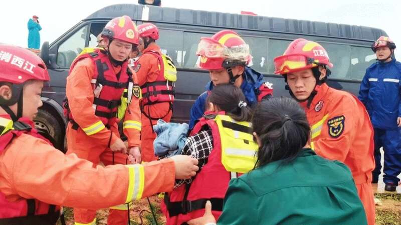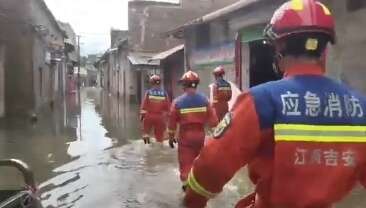 14时33分,消防救援人员到达现场后发现,该路段积水严重,积水最深处已没过大腿,消防车无法驶入,只能徒步搜寻被困人员。1分钟后,消防救援人员在一家杂货铺内找到被困群众,于是立即将他们转移到安全地带。