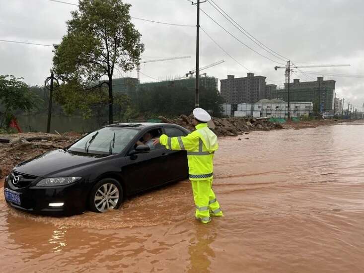 新余交警奋战在防汛救灾一线