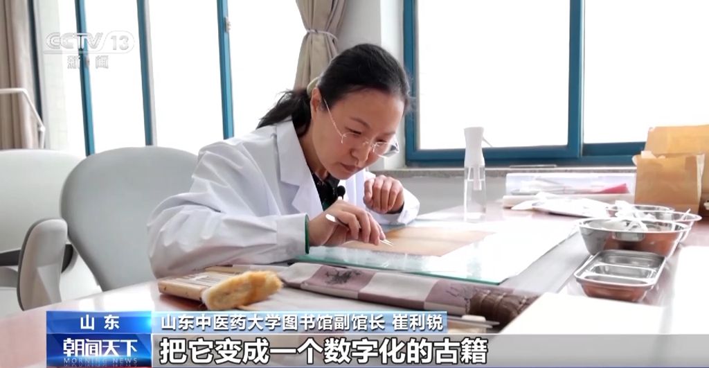 山东中医药大学图书馆副馆长 崔利锐:目前我们已经修复了中医药类的古籍,总计是13函55册,总共2500个筒子叶,修复完成之后,我们将修复好的书叶,进行数字化加工,把它变成一个数字化古籍,以利于后期更好地利用与整理。