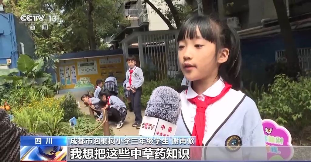 成都市泡桐树小学老师 雷蕾:我们学校是四川省首批中医药文化进校园的示范学校,我们学校还有“百草园”,在这里种植了几十种的中草药。