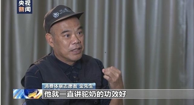 消费体察志愿者 金先生:一份驼奶开价是一千六百多块钱,就一直没有人买。然后他就开始往下降,最后降到三百多块钱也卖,结果大家就更不敢买了。他就一直讲驼奶的功效好,防治高血压。