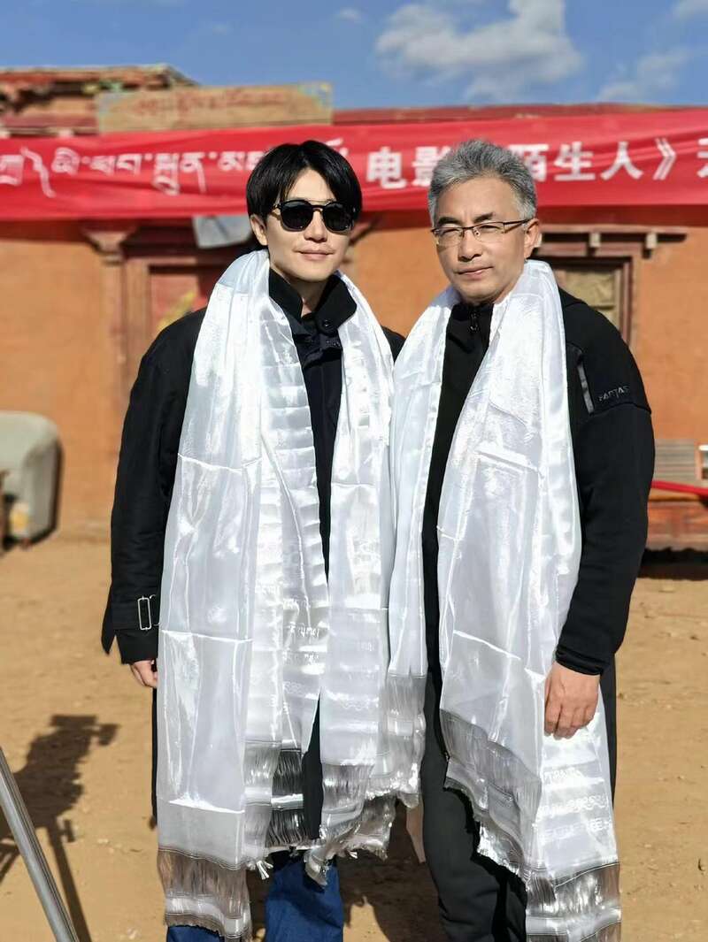 黄轩和万玛才旦在《陌生人》开机仪式上
