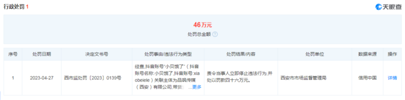 直到近日,品飒传媒(西安)有限公司因虚假宣传被西安市市场监督管理局罚款46万元。