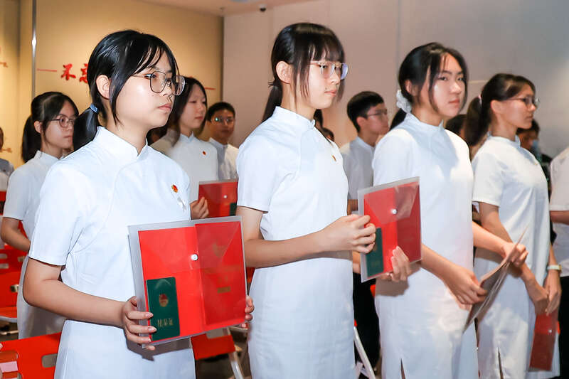 当天,新团员代表从主办方及老团员代表手中接过团徽和团章、团员证。广州市第七中学高二学生刘毅铮感觉身上的担子更重了。他意识到,以后要多关注国家大事,就像誓词中所说的:为共产主义事业而奋斗。