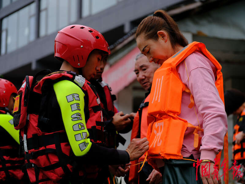5月8日,四川省乐山市沐川县,救援人员将受困群众转移到安全区域。 程雪力/摄