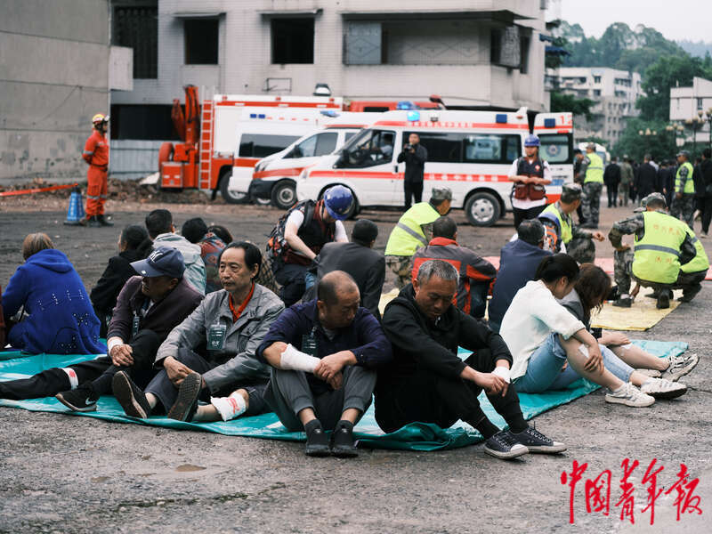 5月8日,四川省乐山市沐川县,救援人员正在进行地震救援演练。程雪力/摄