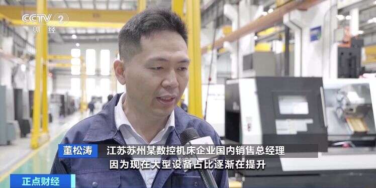 江苏苏州某数控机床企业国内销售总经理 董松涛:目前公司的生产比较紧张,因为现在大型设备占比逐渐提升,所以公司生产压力也是比较大,很多大型设备生产订单已经排在第三季度或者第四季度。