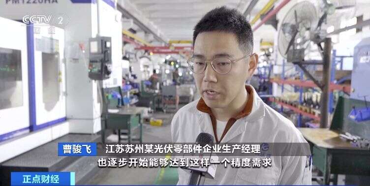 在江苏苏州的一家零部件生产企业内,厂区里的数控机床正在加工金属零部件。负责人告诉记者,这些零部件将会应用在下游的光伏产业上。