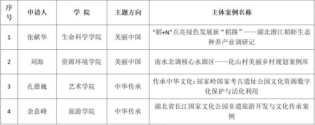本次征集工作共有184家研究生培养单位推荐的798个项目参与申报,涵盖62个专业学位类别。经过“单位审核推荐”“专家分组评议”“案例专家委审核确认”三级评议审核,150家单位的420个申报项目获批立项。我校共有4个项目入选,其中2项入选“中华传承”主题案例,2项入选“美丽中国”主题案例。