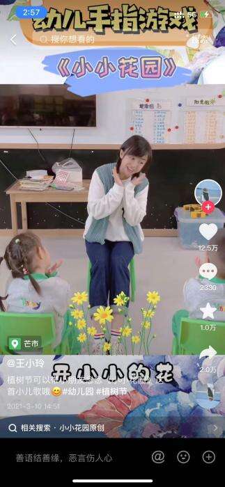 此外,4月22日,网名“草莓壳”的作者发布了其幼师女友(网名:小草莓老师)表演的“挖呀挖”视频。还有网友指出,网名“王小玲”的作者在2021年3月10日就发布过一版《小小花园》。