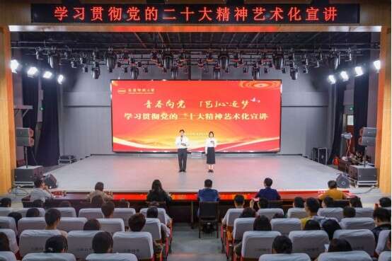 中国青年客户端讯(虞欣 中青报·中青网记者 王海涵 王磊)“让我以青春的名义,向祖国报告……”日前,安庆师范大学“青年新声”宣讲团以“青春向党 艺心逐梦”为主题,通过朗诵、歌曲、舞蹈、戏曲、器乐演奏等表演形式,为全校师生带来了一场学习贯彻党的二十大精神艺术化宣讲。