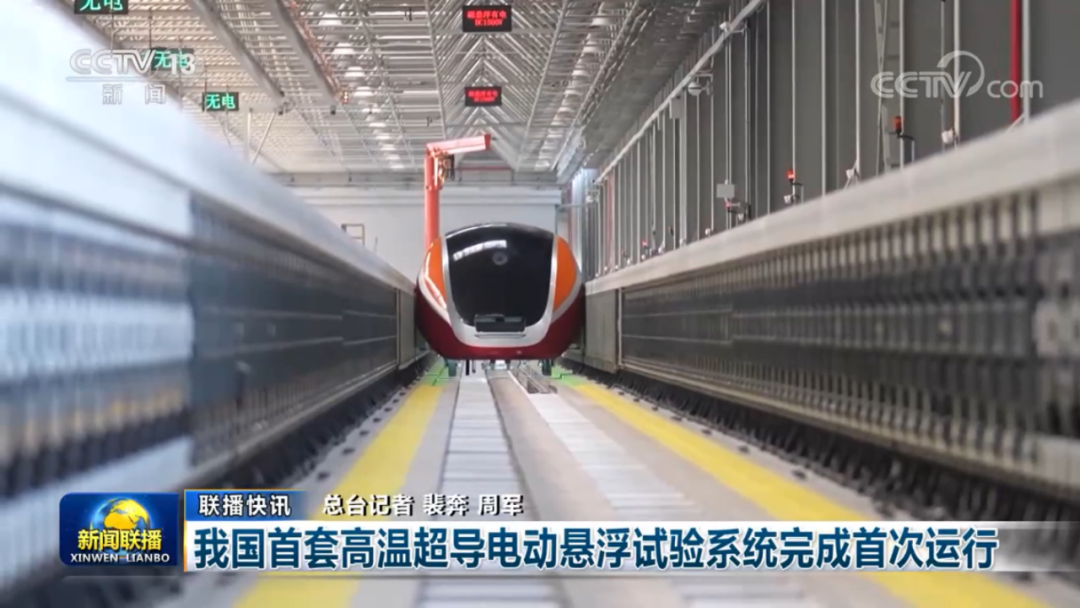 ▲ 央视《新闻联播》报道交大团队参与研制的我国首套高温超导电动悬浮试验系统(图源:央视新闻)