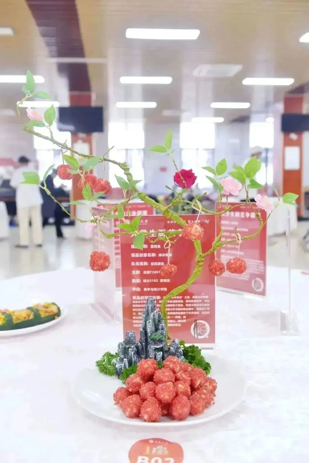 摆盘区 ,选手们将创造和巧思融入厨艺劳动中,或运用中国山水、花卉、鸟类、动物等艺术,或融入月圆月缺、万家灯火、年年有余等诗词意象,不仅美味,更加好看。