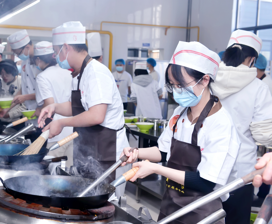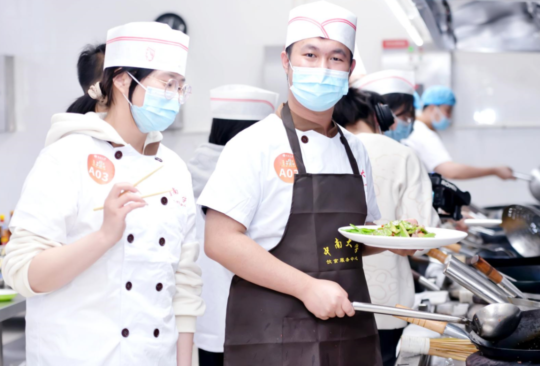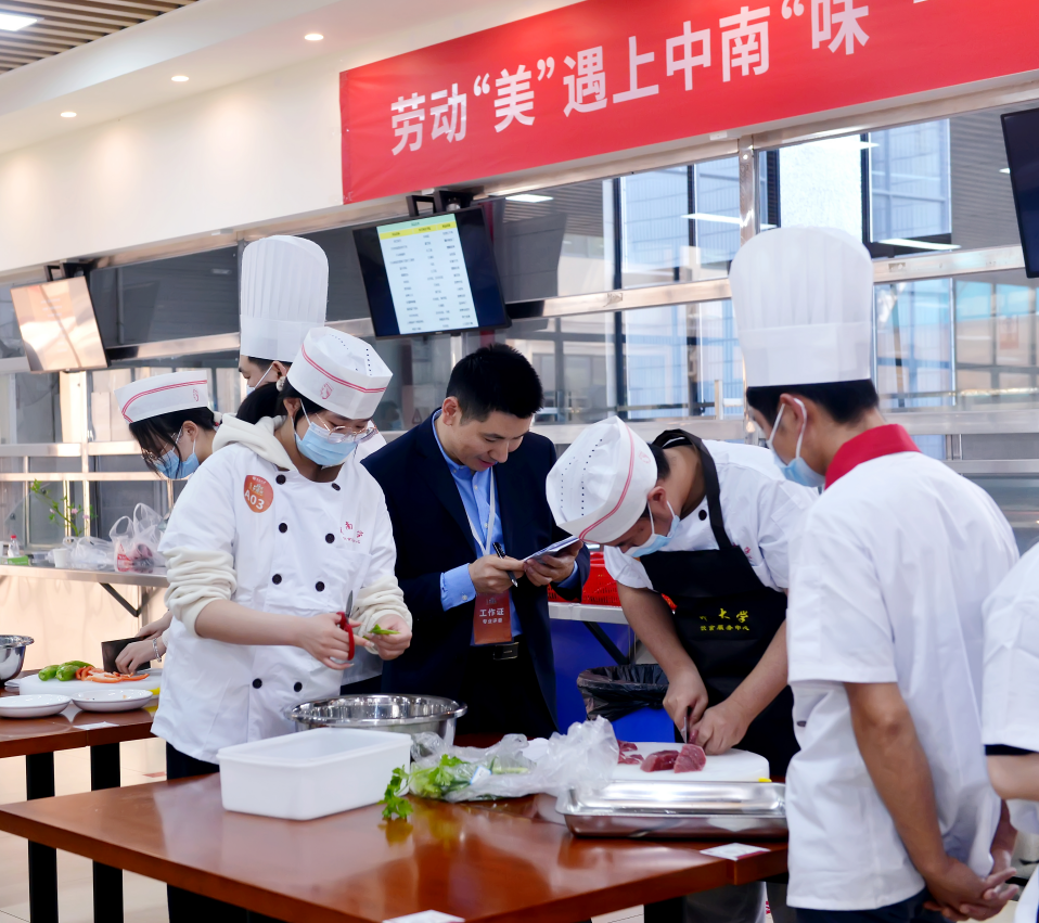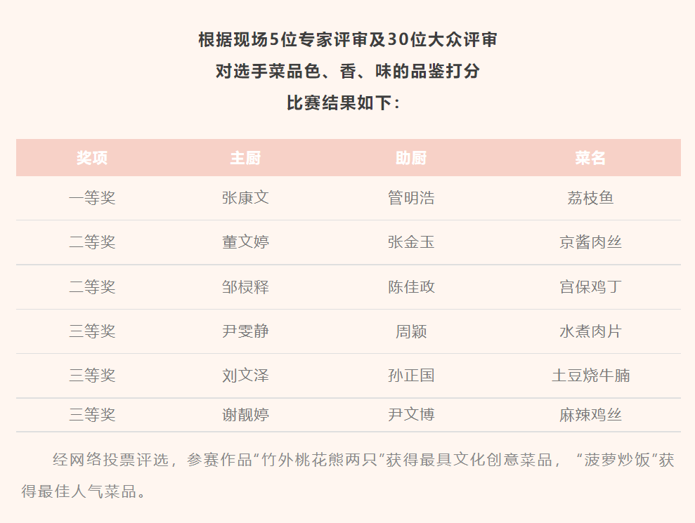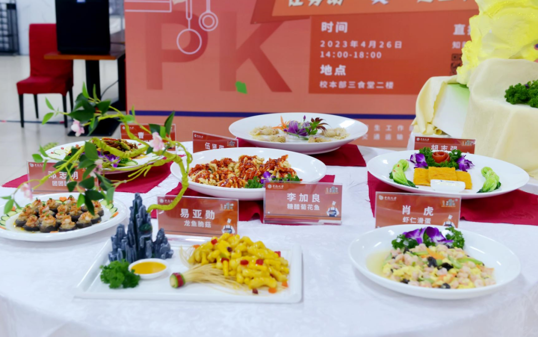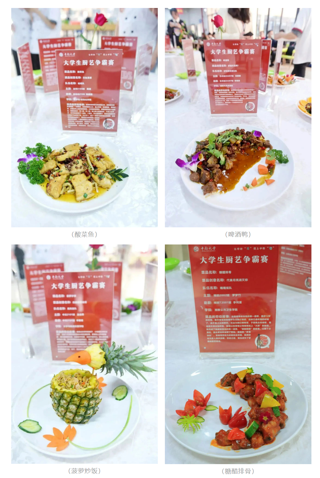 烹饪区,在厨师长导师的协助下,30支参赛队伍开始烹调起各自的菜品。选手们个个胸有成竹,操作娴熟,锅具翻飞之间,一道道美味佳肴新鲜出炉。荔枝鱼、干锅虾、金钱蛋、毛氏红烧肉、酸菜鱼、糖醋里脊……大江南北,各色菜系,令人垂涎。