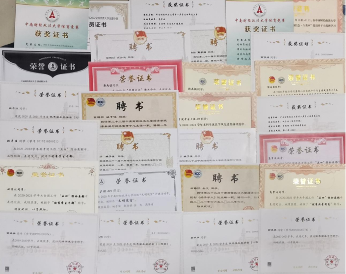 ● 作为负责人获得大学生创新创业项目省级立项,曾获一等奖学金、“三好学生”、优秀共青团员、楚才杯作文竞赛二等奖等荣誉。