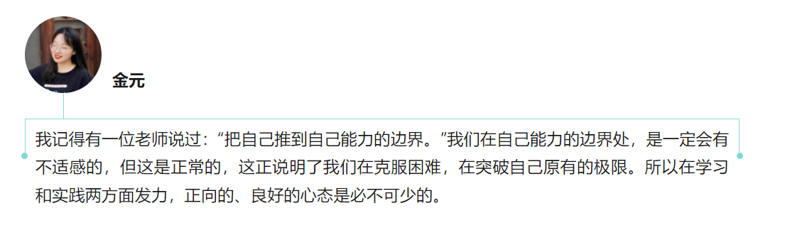 金元:很多时候,大家自以为的“进退维谷”之日,可能就是“别有洞天”之时,主动地迎难而上,一定会见到别样的风景。