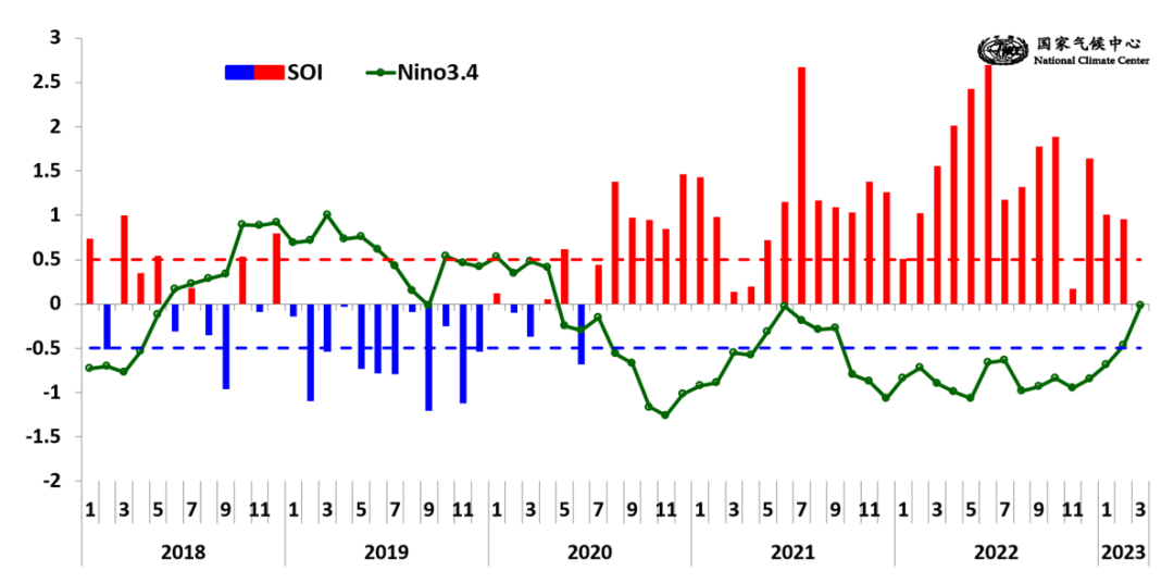 国家气候中心最新监测结果显示,2023年1月至3月尼诺3.4指数平均值为-0.4℃,已低于-0.5℃拉尼娜阈值,因此“三重”拉尼娜在2023年春季之前结束。