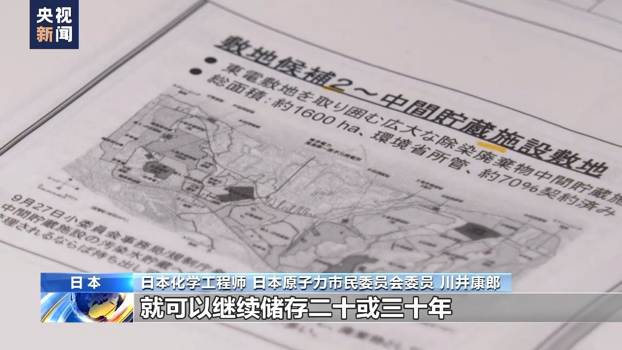 日本化学工程师 日本原子力市民委员会委员 川井康郎:福岛第一核电站周围其实有面积很大的土地,现在用作“除染废弃物临时存放区”。我认为从现在开始算,仅在福岛第一核电站内部就可以继续储存二十或三十年,如果加上“除染废弃物临时存放区”,有可能存到问题基本解决,我认为这是有可能的。
