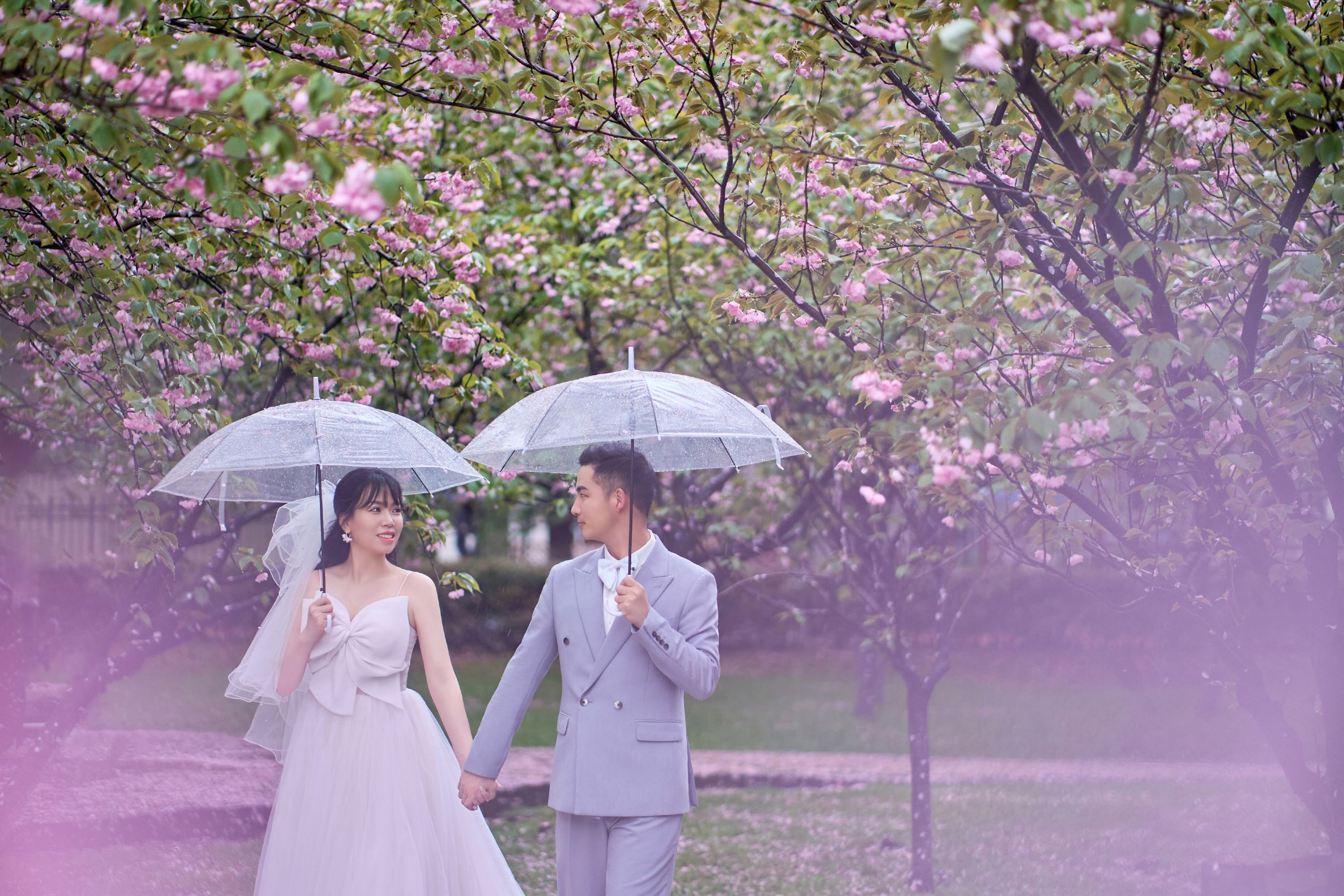 资环门口的樱花树下,被暴雨打落的晚樱铺满一地,两人相拥而立,深情对视,摄影师定格一瞬。樊晓慧说,那一刻,读研期间每天晚上10点从实验室出来,汪洋送她回二期宿舍的场景历历在目。