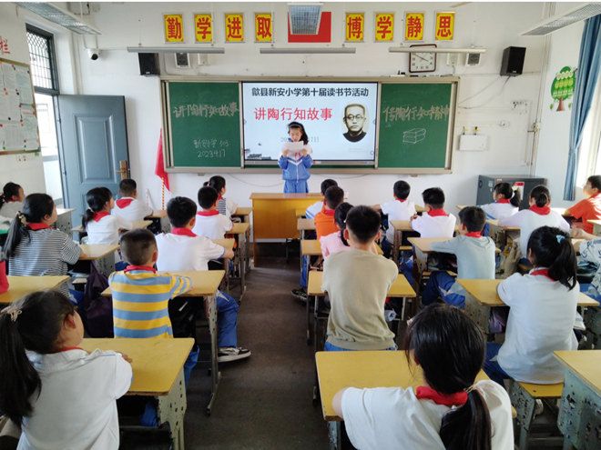 各学校以“学陶师陶研陶做陶”活动为抓手,大力学习弘扬陶行知教育思想。歙县新安小学组织在校师生“诵陶文”“唱陶歌”,激励全体师生以陶为师、与书为友。晨会上,学校老师带领全学生追溯了陶行知先生的人生历程,结合学校“求真”校训,引导学生理解“千教万教教人求真,千学万学学做真人”的深刻内涵。