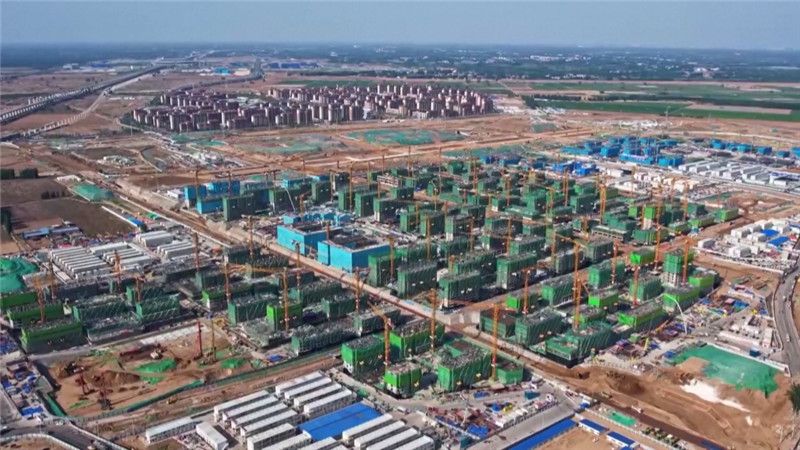 雄安新区建设中的建筑物航拍图。