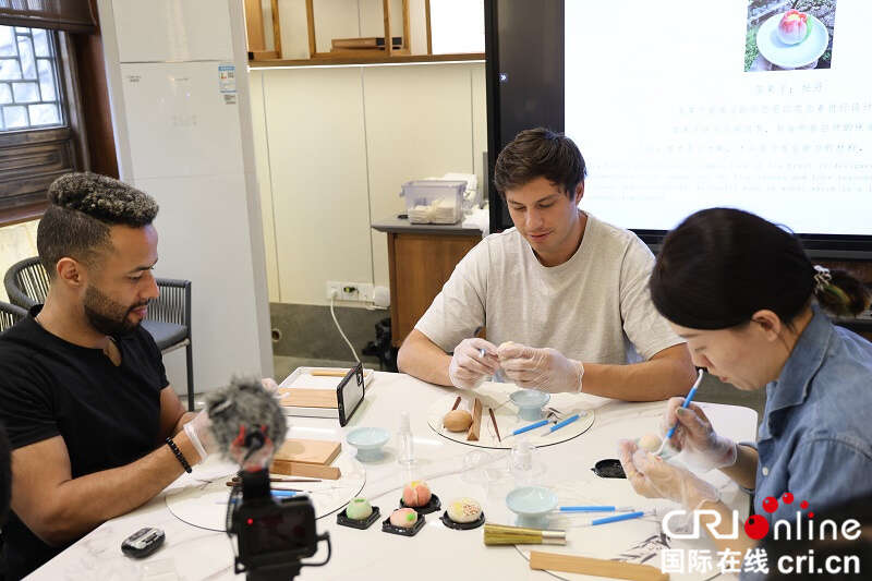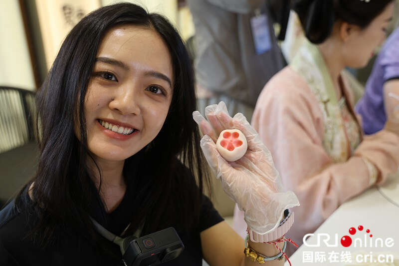 多语种主播展示自己制作的茶果子 摄影 贾亲亲