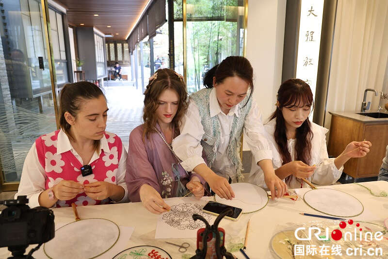 国际在线河南频道消息(张雨晴):5月10日,参加2023“打卡中国·读懂中国式现代化——你好,河南!”网络国际传播活动的外国网红、多语种主播兴致勃勃地走进“开封第一巷”——双龙巷历史文化街区,寻访宋都古韵。绣团扇、扎风筝、做茶果子……网红主播们聚精会神,沉浸式感受指尖上的非遗魅力。