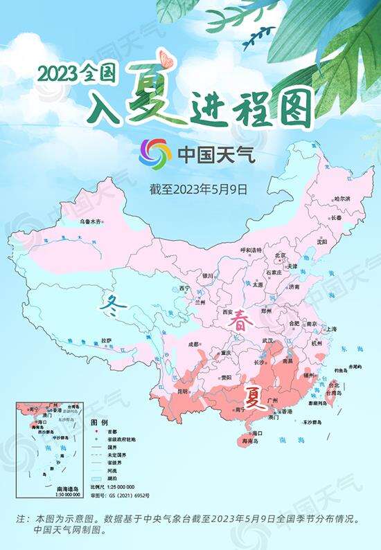 总体来看,今年入夏进程相比常年略偏早。专家分析,截至5月9日,我国华南大部、云南大部、湖南东部、江西大部、湖北东南部以及重庆部分地区已进入气象学意义上的夏季。除了新疆局地、内蒙古东部、青海和西藏高海拔地区还处于冬季,其他地区都处于春季。