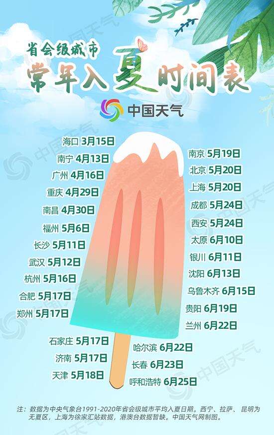常年省会级城市入夏时间表出炉 北京上海等14大城市5月入夏