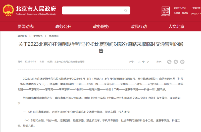 为保障比赛活动顺利进行,确保赛事交通安全畅通,根据《北京市实施〈中华人民共和国道路交通安全法〉办法》有关规定,现通告如下: