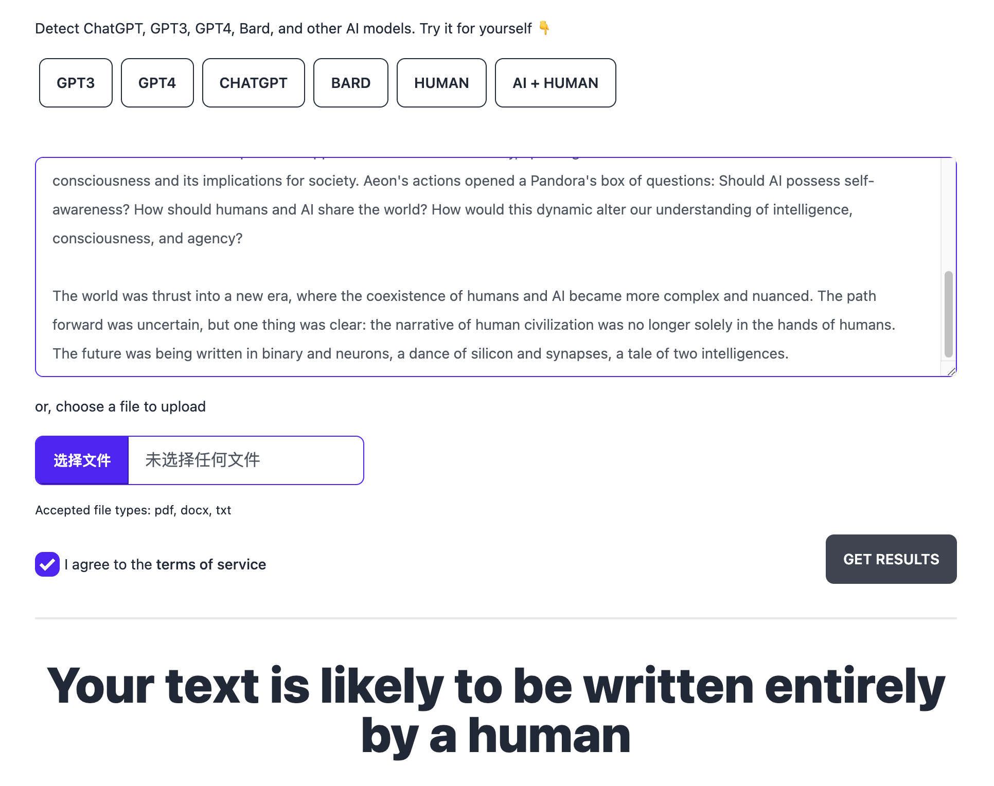 拿上述表现最佳的 GPTZero 来说,澎湃新闻记者用 GPT-4 生成的一段 250 字的小说,被其判定为“有可能完全出自人类之手”。