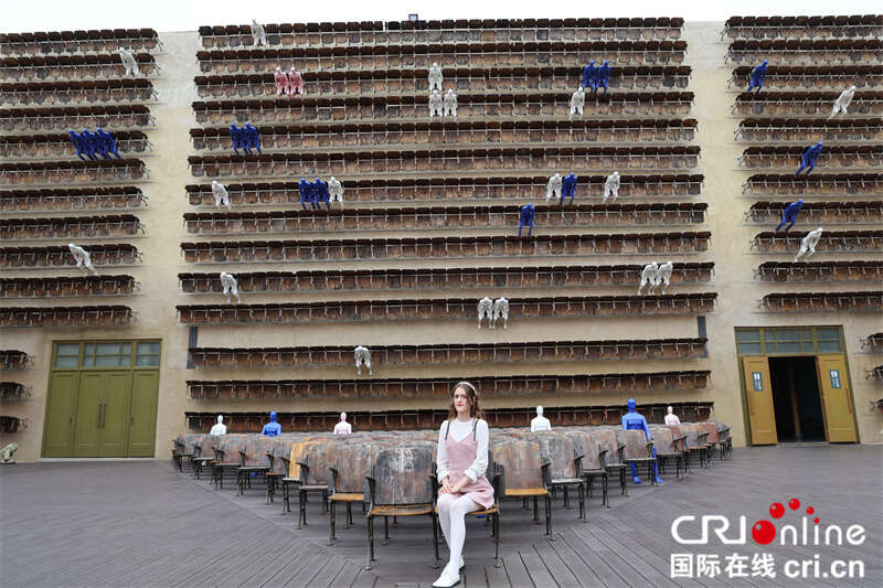 罗马尼亚网红安娜在椅阵剧场拍照 摄影 贾亲亲
