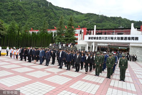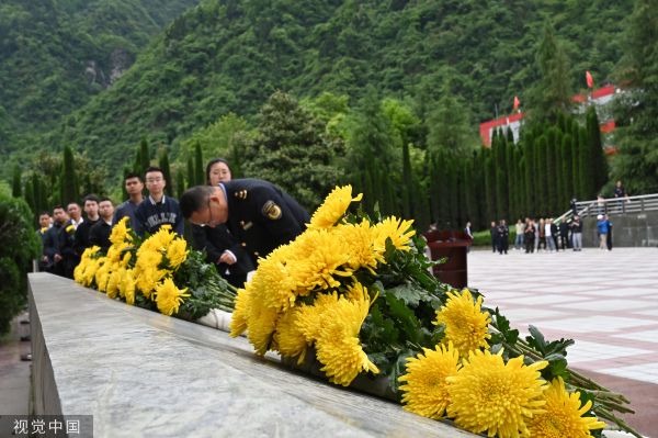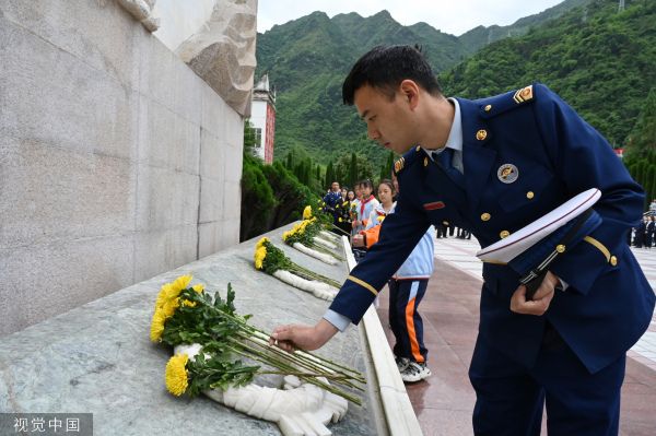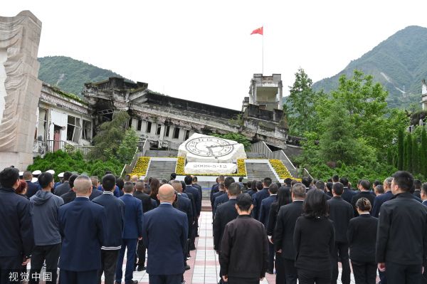 2023年5月12日,四川阿坝,“5·12”汶川特大地震15周年追思活动在汶川县映秀镇漩口中学遗址举行。