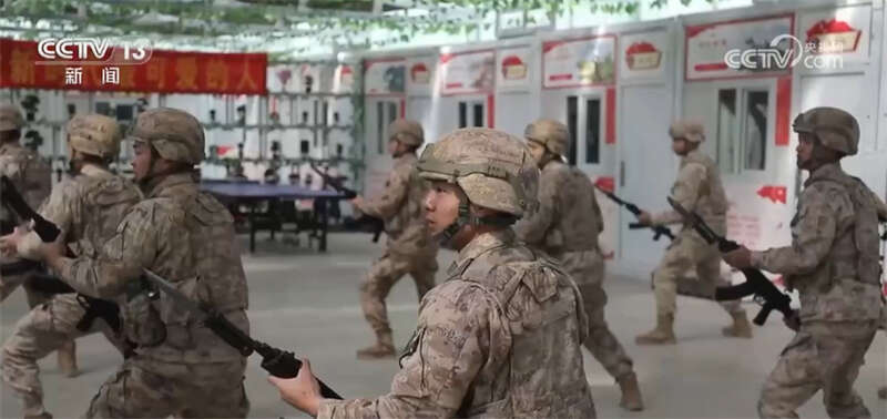 在某边防连,新搭建的阳光训练场里,战士们正在加紧训练。虽然所处的自然环境恶劣,训练却不能落下。