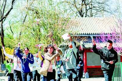 恭王府博物馆举办的中华文化研习交流活动中,年轻的学员们放飞亲手制作的风筝,感受传统文化中的精雅生活理念。作者单位供图