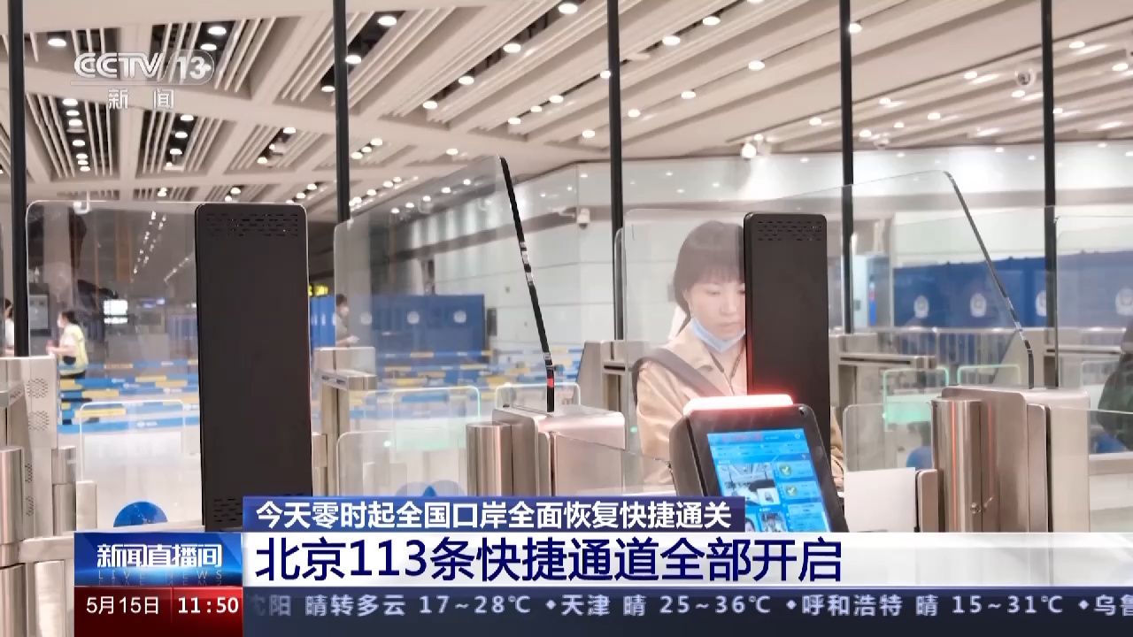 为进一步保障便利中外出入境人员往来,全国各个口岸从今天(15日)零时起全面恢复快捷通关。