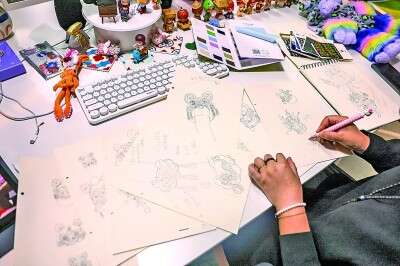青年文创产品创业团队成员在位于广西桂林的工作室内创作。新华社发