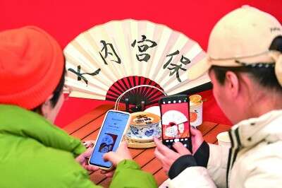 北京大栅栏,顾客在拍摄“老字号”内联升的文创咖啡。新华社发