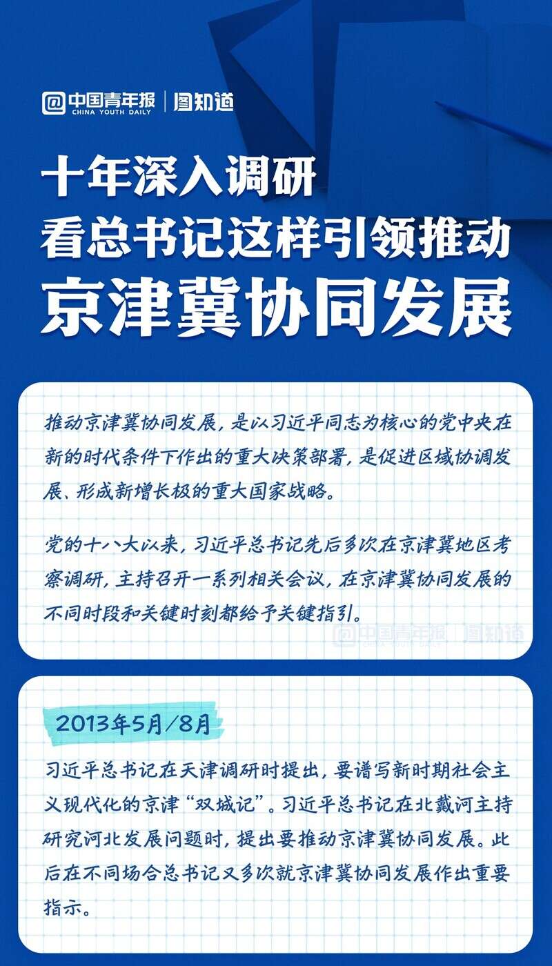 推动京津冀协同发展,是促进区域协调发展、形成新增长极的重大国家战略。十年间,总书记多次在京津冀地区考察调研,主持召开一系列相关会议,在京津冀协同发展的不同时段和关键时刻都给予关键指引。跟随图解,看总书记这样引领推动京津冀协同发展。