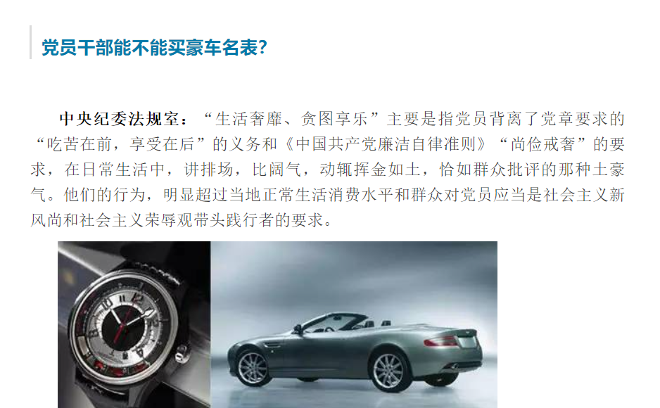 那么,在个人和家庭收入合法的前提下,党员干部能不能开豪车、戴名表?