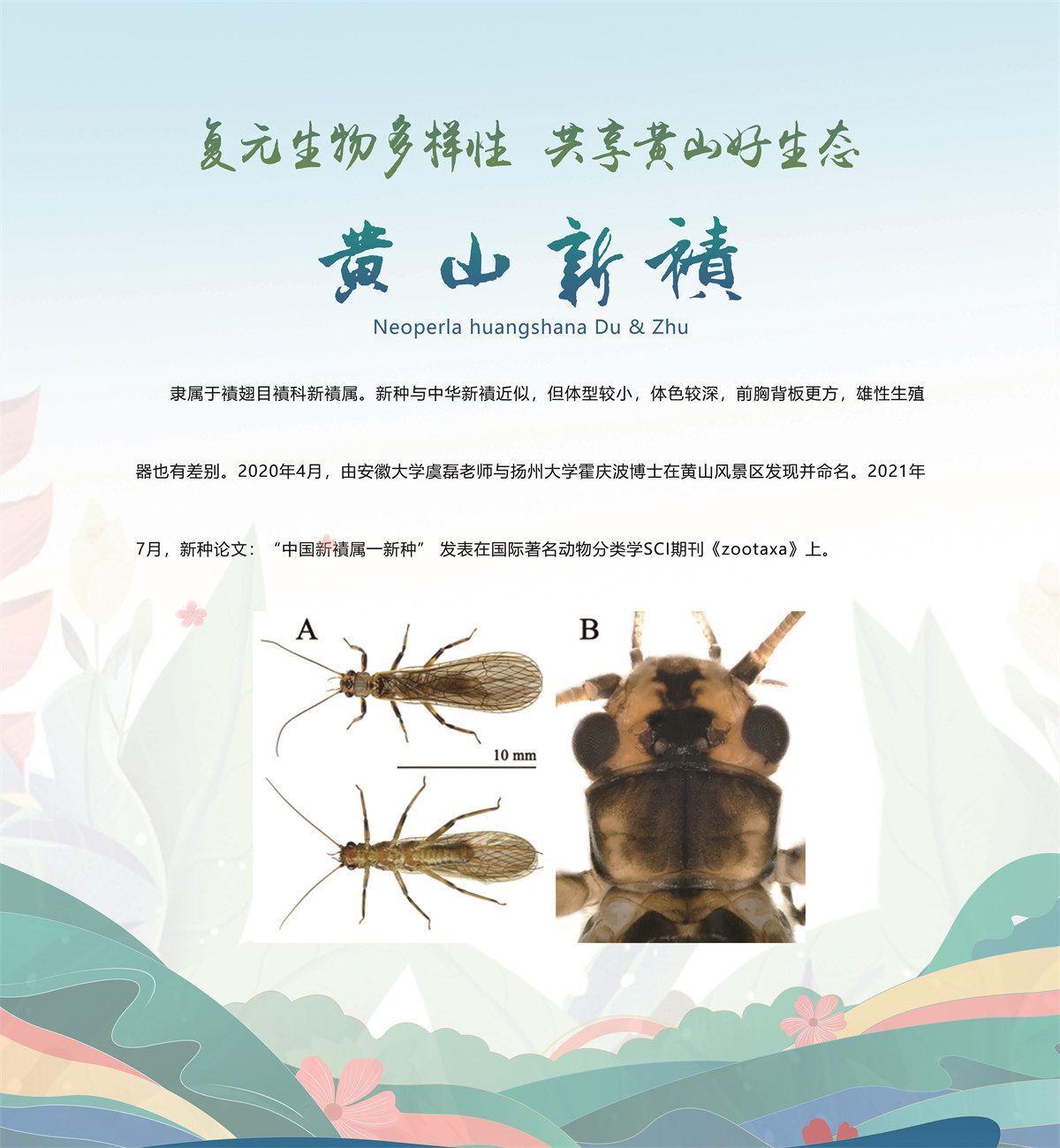 据了解,黄山市被誉为“华东物种基因库”,全市森林覆盖率82.9%,现有各类植物3000多种、陆生野生脊椎动物460多种、常见鱼类60余种,是全国生物多样性最丰富的地区之一。生物多样性调查与评估工作是摸清生物多样性本底、识别威胁因素、分析保护成效的根本途径,是制定生物多样性保护管理政策的重要基础。此次新物种的发现对于研究物种的起源与进化以及未来的进化方向有着极其重要的意义。