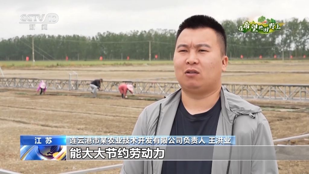 连云港市某农业技术开发有限公司负责人 王洪业:机械化智能化育秧能大大节约劳动力,整个育秧工厂可以替代100个人作业,如果满负荷运转,每天可以完成水稻秧苗10万盘,满足3000亩大田的机插用秧量。
