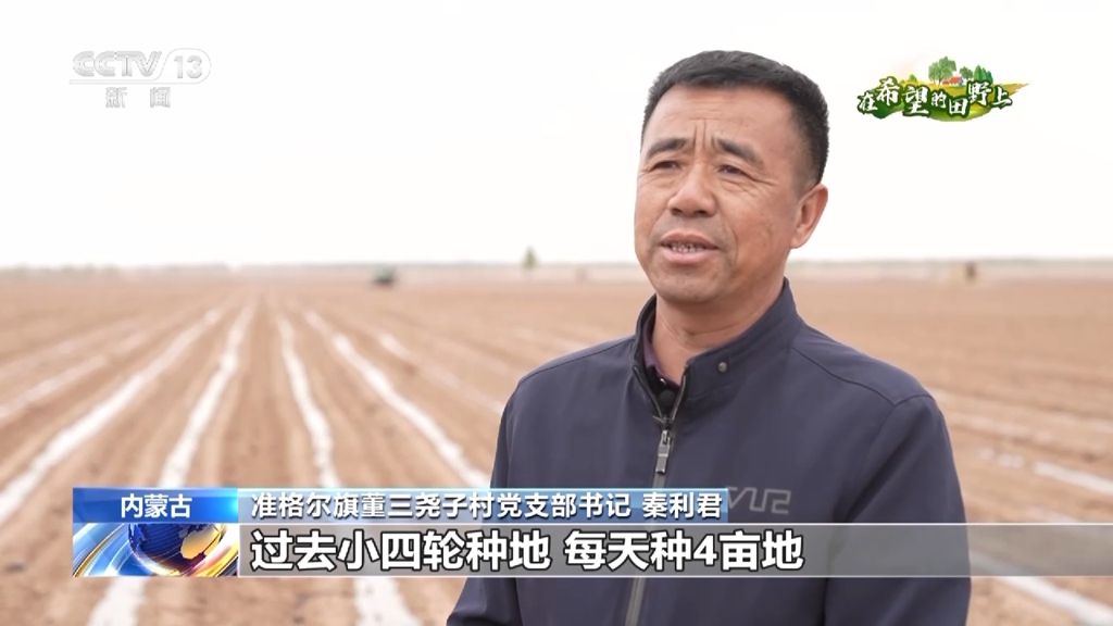内蒙古准格尔旗董三尧子村党支部书记 秦利君:过去小四轮种地,每天种4亩地。现在,大型机具一天种60亩地。像咱们这500多亩地,十天左右就种完了。