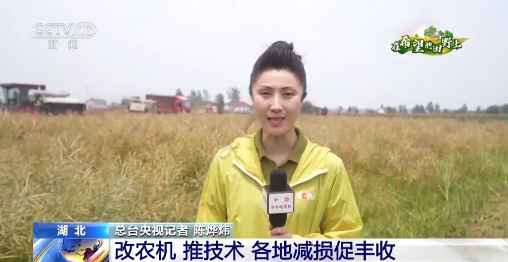 总台央视记者 陈烨炜:我现在是在湖北省枝江市的一处油菜地里,在我身后,几台收割机正来回穿梭作业,今年这里采用的是分段式的收割方法,这种方式可以大大降低机收的损失率,有助于增产增收。