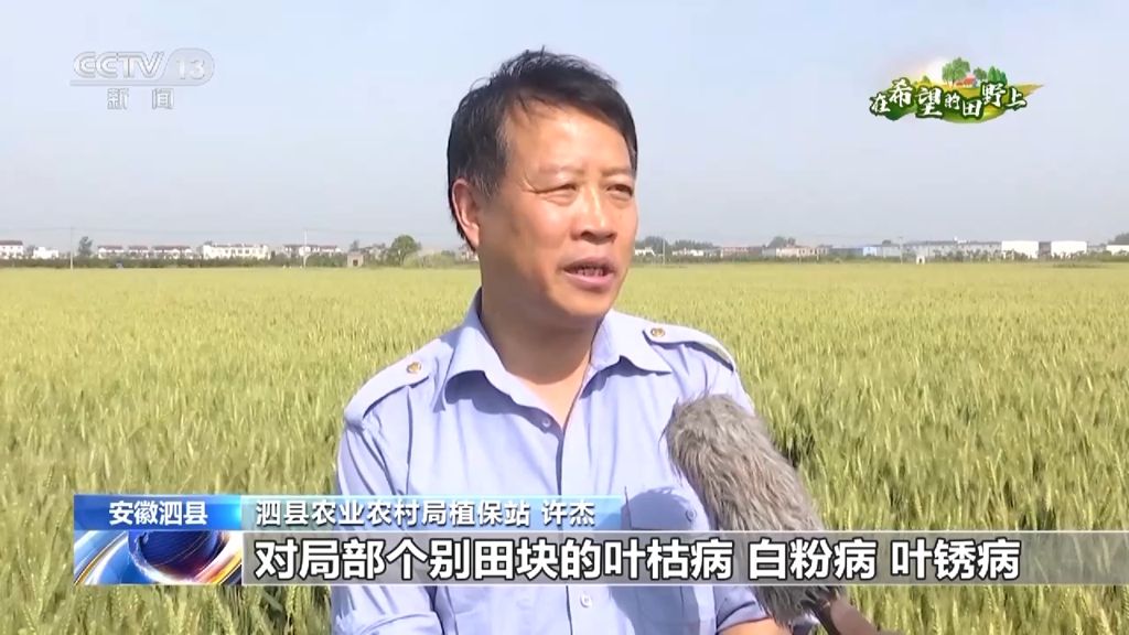 泗县农业农村局植检植保站站长 许杰:对局部个别田块的叶枯病、白粉病、叶锈病可以增加一点杀菌剂,有针对性进行防治,在喷施时候一定要喷匀、喷透、喷细。
