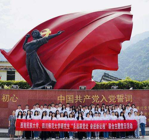5月17日,西南民族大学“梦想接力棒”研究生宣讲团、研究生会联合四川师范大学研究生会赴汶川县映秀镇,开展“永远跟党走,奋进新征程”联合主题党日活动。两校80余名师生参加活动。