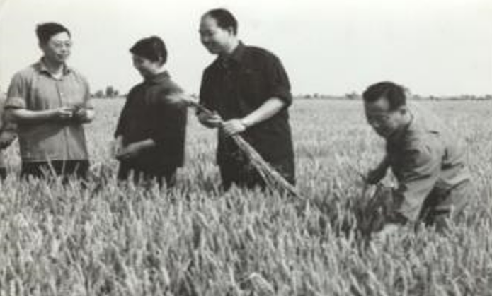 辛德惠在田间考察生产